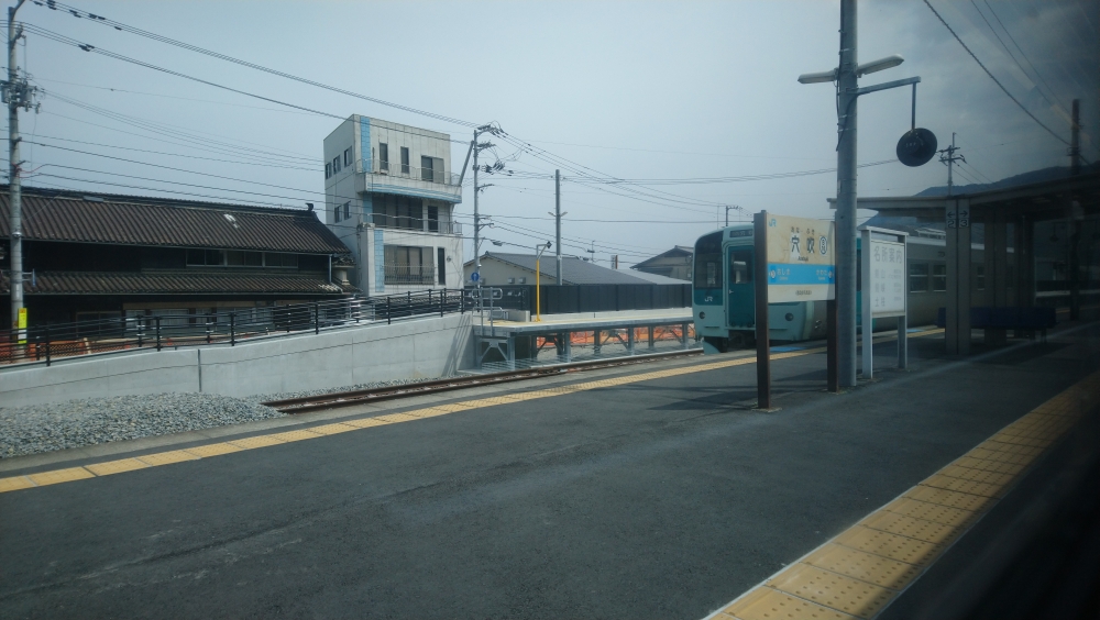 穴吹駅に停車中。新しそうなホームが見えます↓
