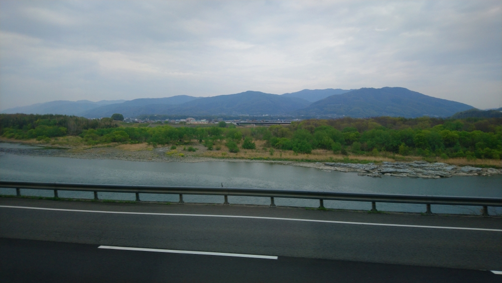 ホテルからの眺め。桜が咲いています。そして橋の道路は酷道と呼ばれる国道439号線↓