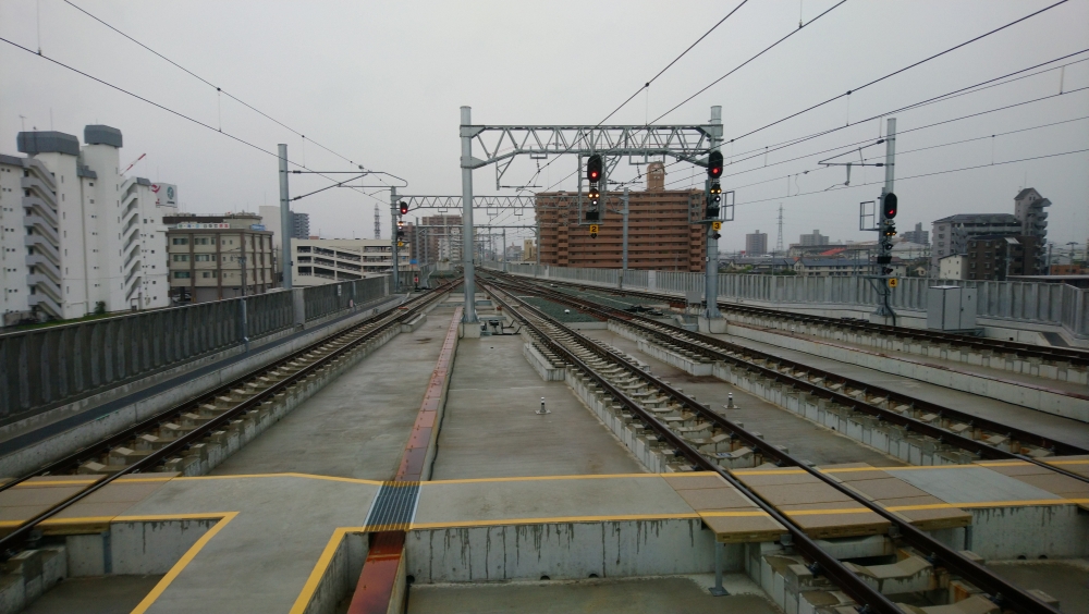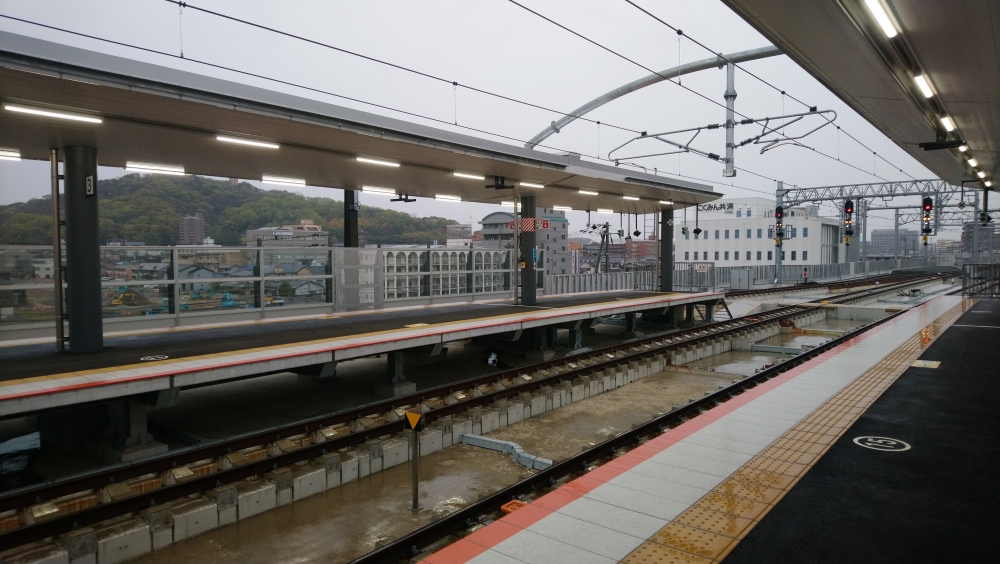 新ホームからの眺め。旧ホームが見えます↓