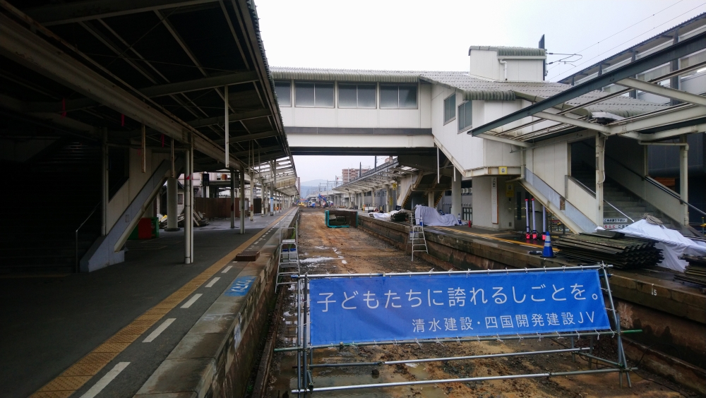 以前の縦列停車だと高松行いしづち号側から(へ)乗りかえるのが大変だったので対面乗り換えで便利になりました。