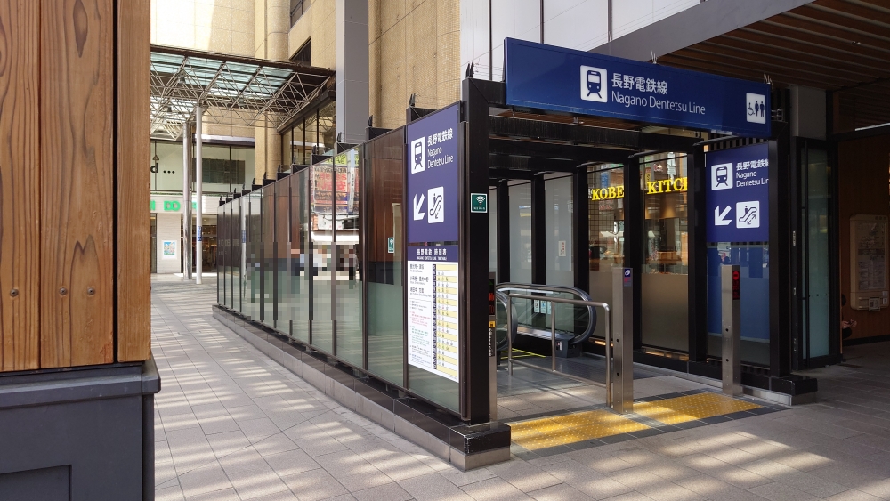 長野電鉄線は地下にあって、改札前では野菜を売ってたりしていました↓