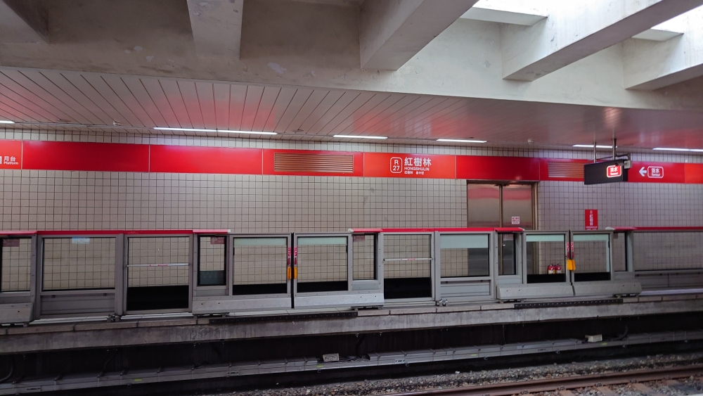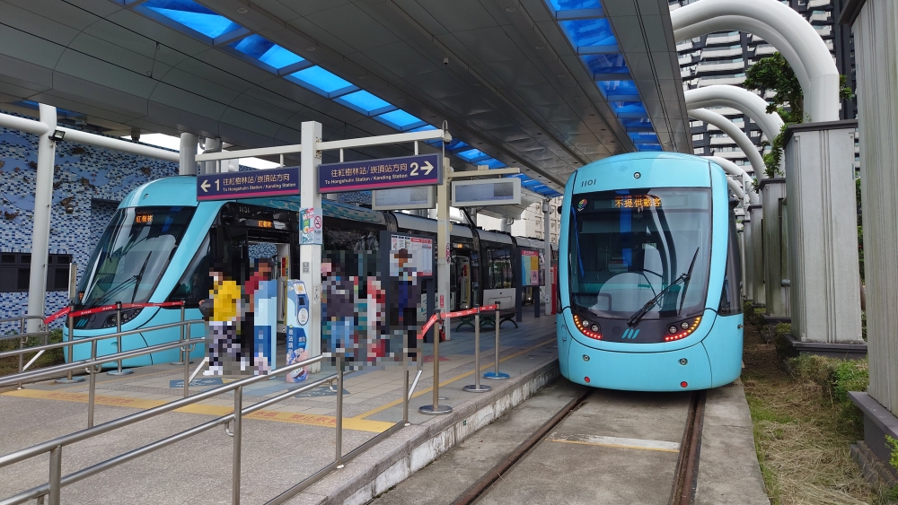 淡水信義線で終点淡水の一つ手前の紅樹林駅へ。LRTのホームはすぐそばです。このLRTは途中で分岐してそれぞれ時間3本ずつなのでちょっと少ないです。今回は淡水漁人碼頭駅に行って、もう片方の終点、崁頂駅には行けませんでした。