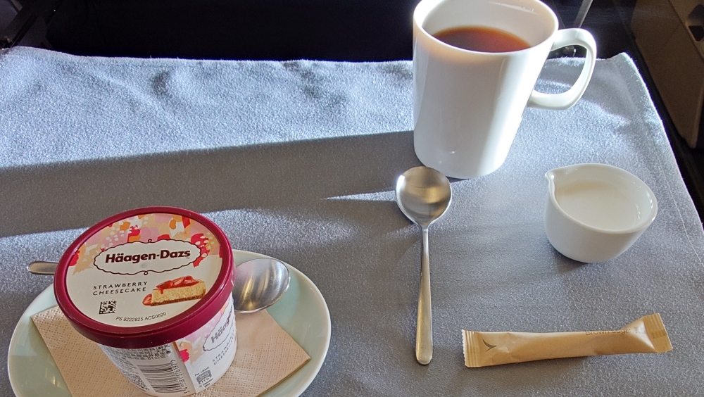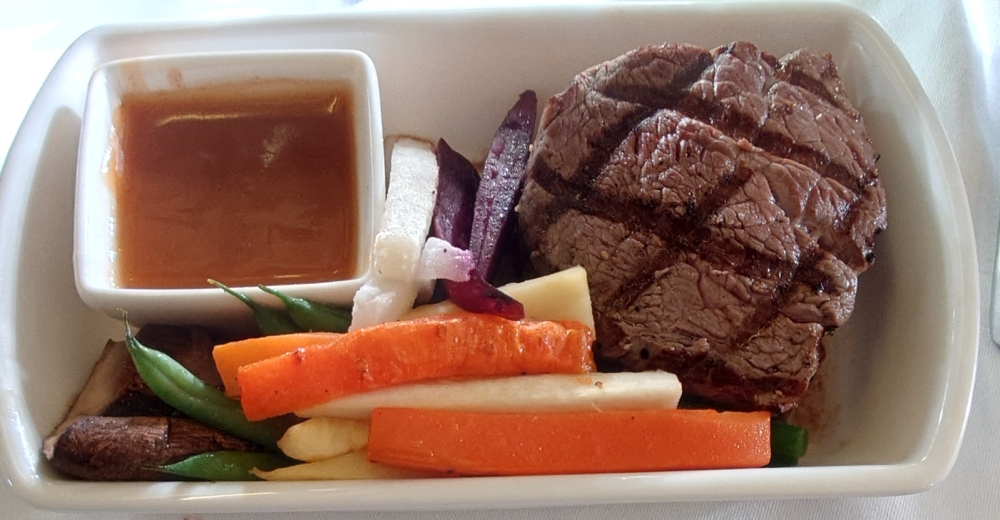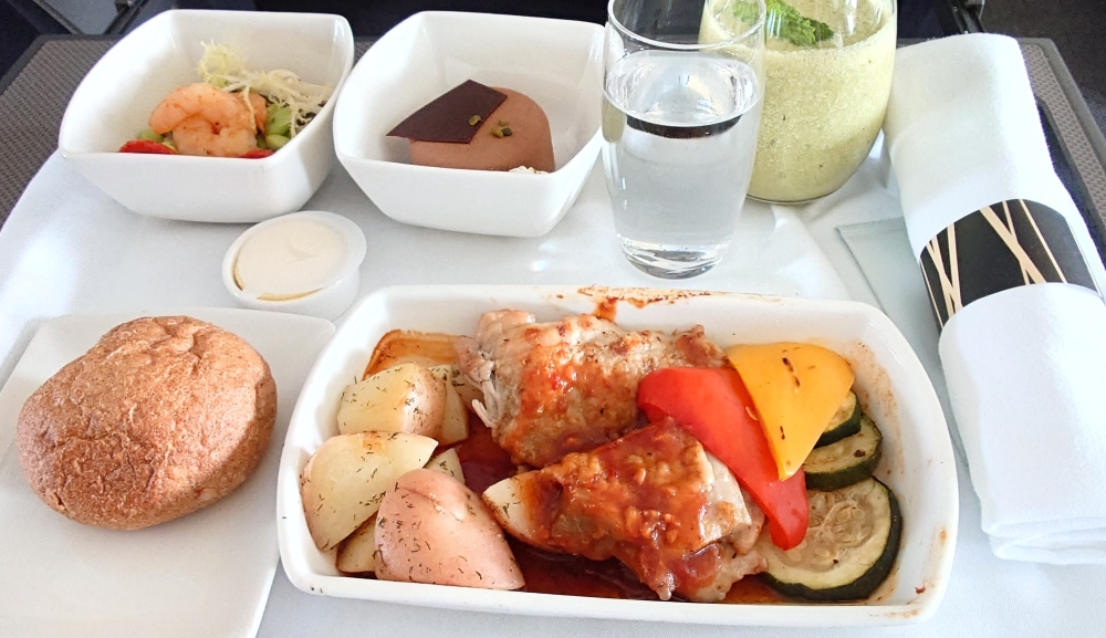機内食はチキンでした↓