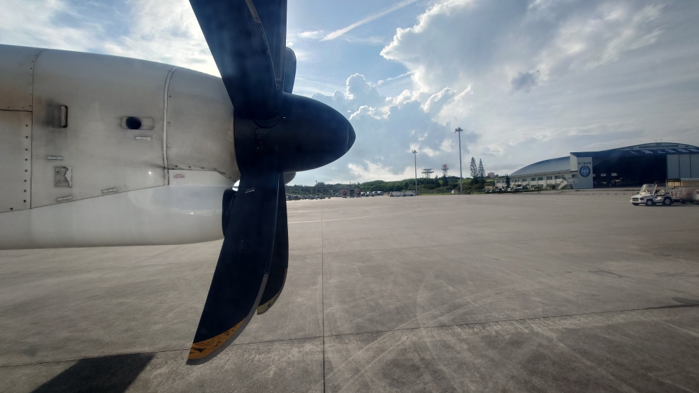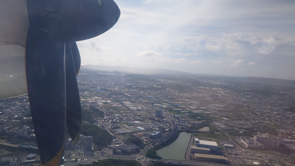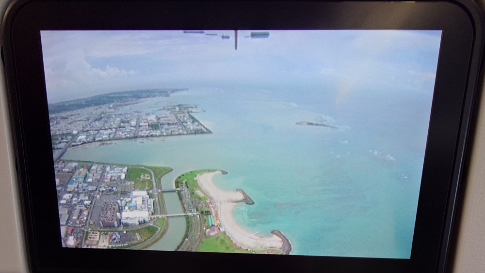 更には伊江島が見えちゃうくらいまで進んでからOKAに着陸しました↓