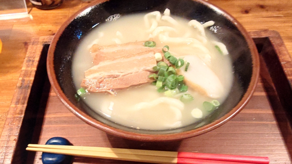 大東そばはうどんみたいに太い麺と優しい味のスープが美味しい↓