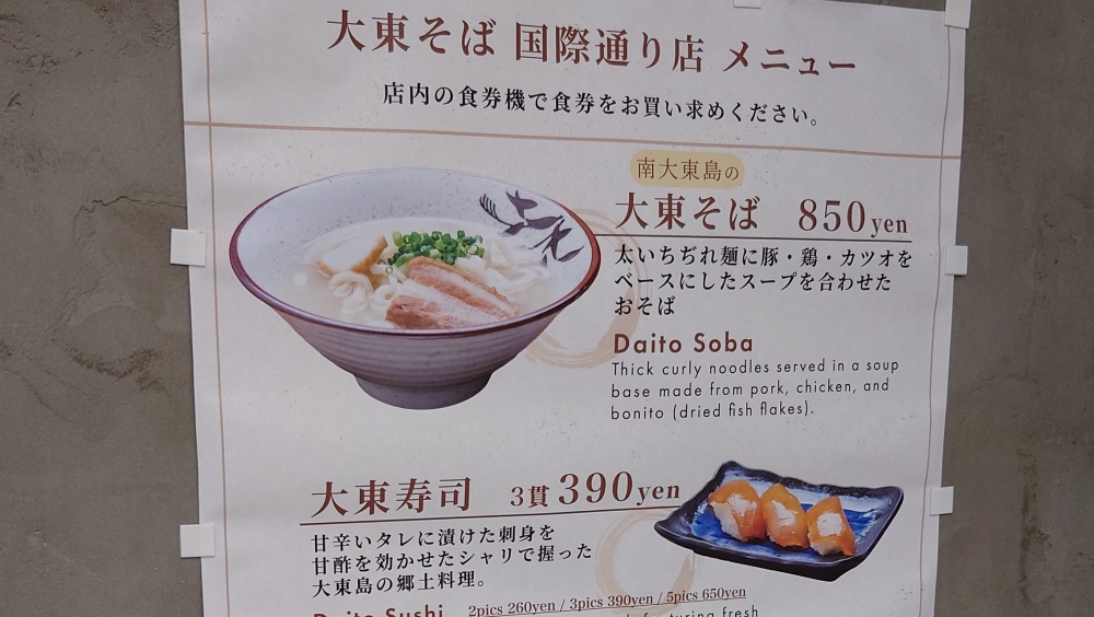 メニュー。大東そばだけでなく、ソーキそば等いろいろあります↓