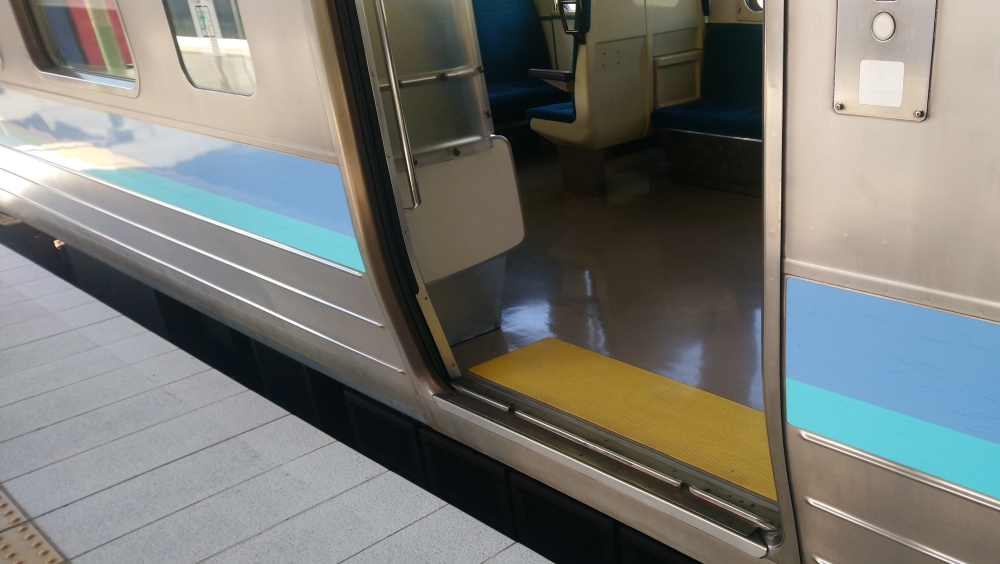 大分からは787系にちりん号。もう古い車両だけど車内はそうは見えないのに、ドアの787シールがダサい感じがしてしまいます↓