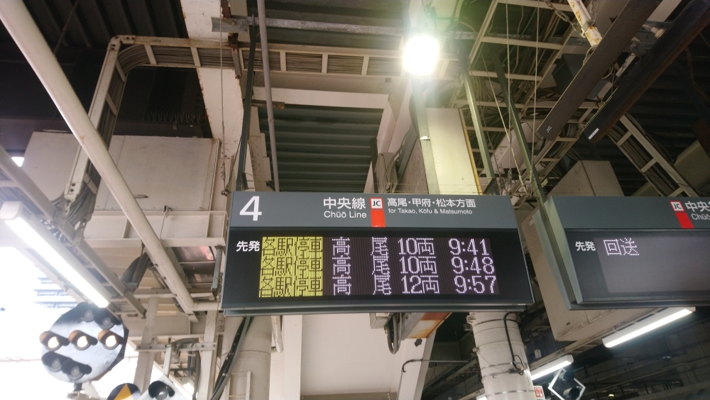 遅延していたせいか甲府方面の発車番線が変わっていました。