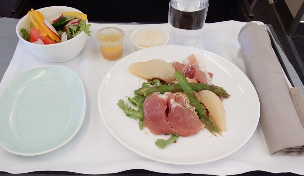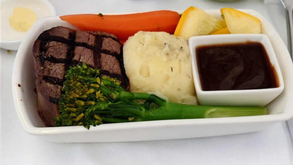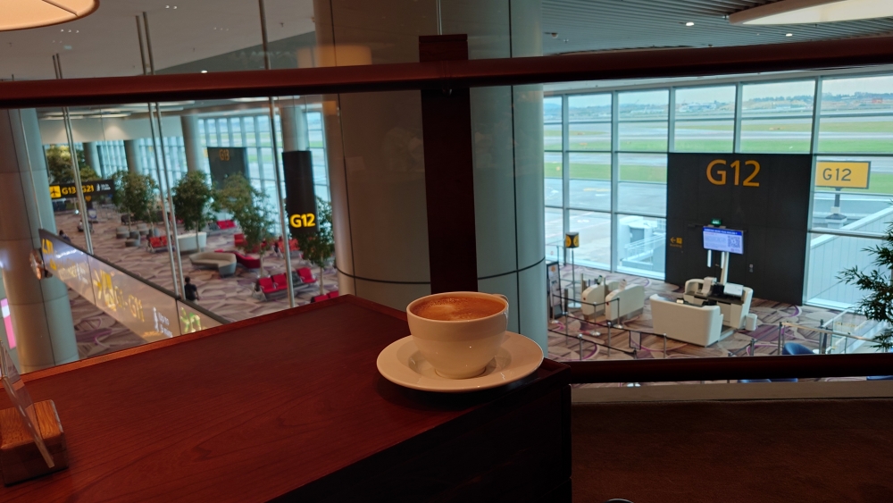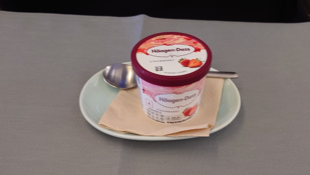 2025-6 シンガポール・台湾8 SIN-HKG CX シンガポール滞在最終日は朝9時台のフライトだったので早めにホテルを出ました↓ T4から出国↓ 朝から担々麺をいただきました↓ 珈琲をいただいて待ちます↓ JLのB6が通過していきました↓ さてCX便に搭乗。前にも書いた通り今回は全便残念な座席でした。緑のブツとナッツ↓ 前菜↓ メインはステーキでした↓ ブレちゃってるけどアイス↓ HKGでは端っこのゲートに着きました。隣にはJL機が↓