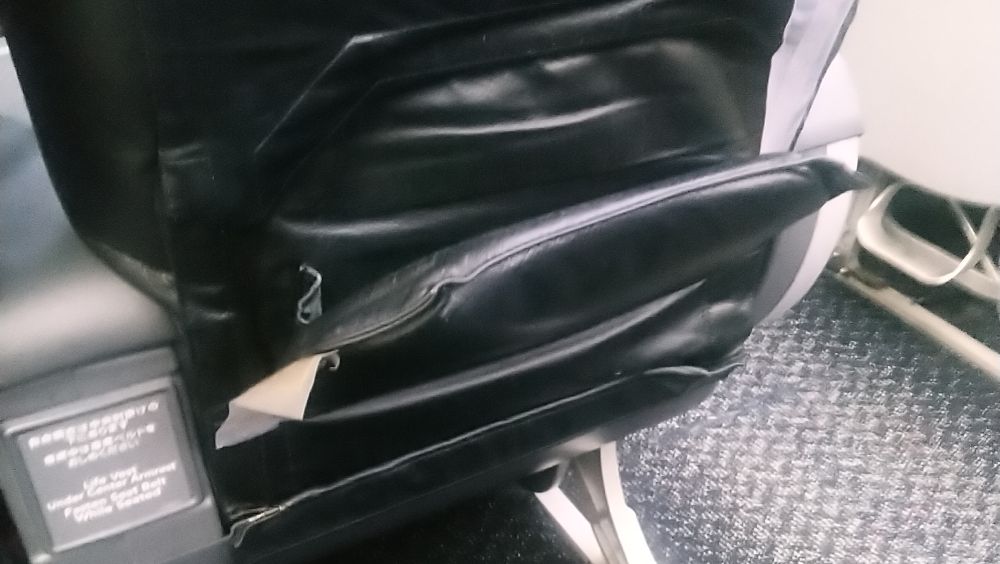 OKA-ISGに搭乗。ポケットが壊れていましたが、後日同じ機材に乗ったら直っていました↓