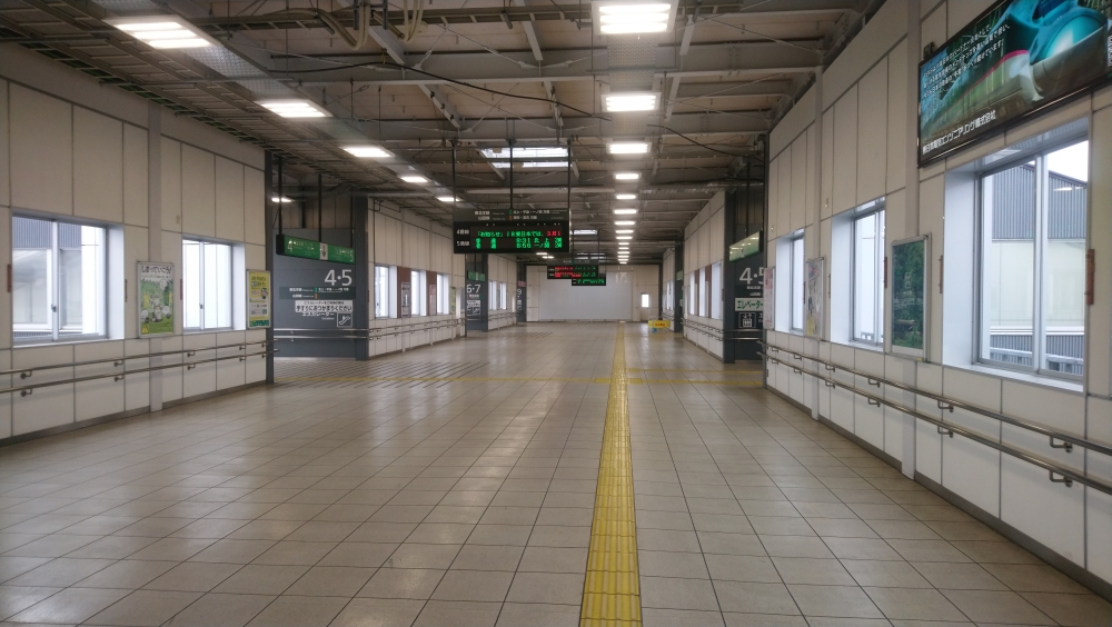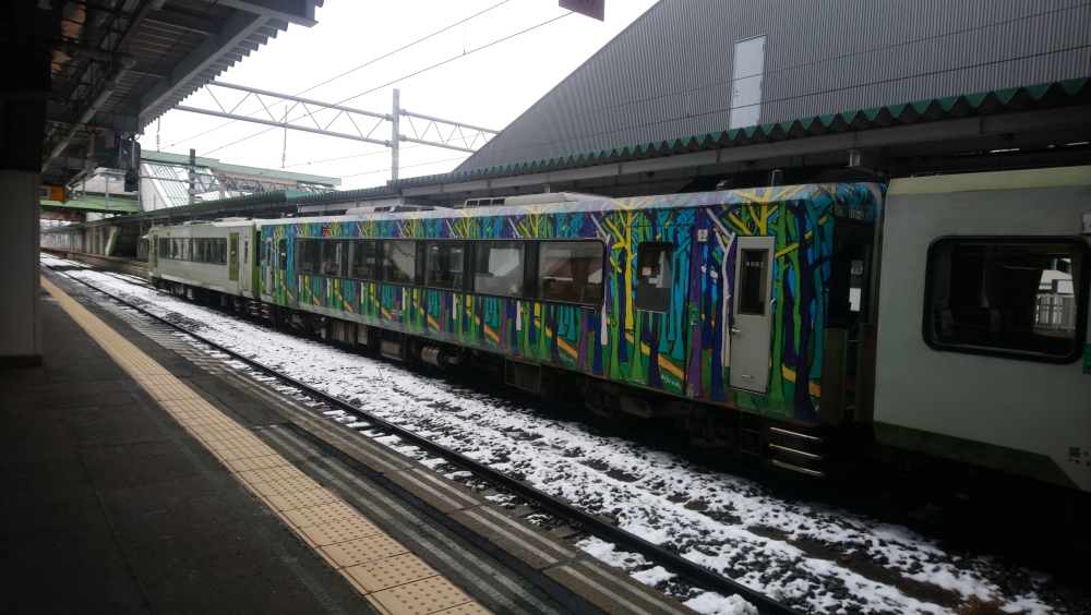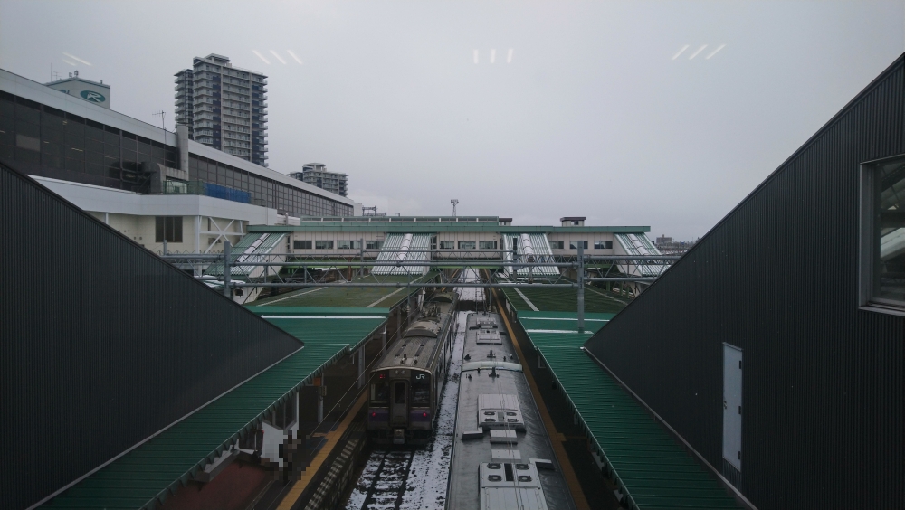 かつてはここから「はつかり」号が発着して賑やかだったけど、現在は長いホームに単編成の普通列車が発着するだけになり寂しい感じがします。