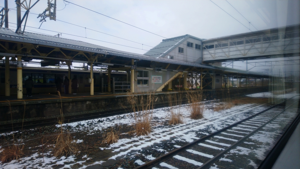 田沢湖線普通列車は701系5000番台。JR四国みたいな片側のみボックス席がある車両ですね。急遽仕事が入ってしまったのでずっとしていました。年始で臨時列車が多いのか頻繁に秋田新幹線とすれ違い、追い抜きがありました。