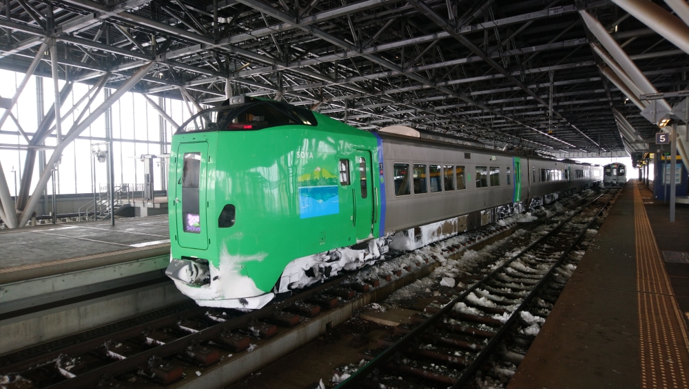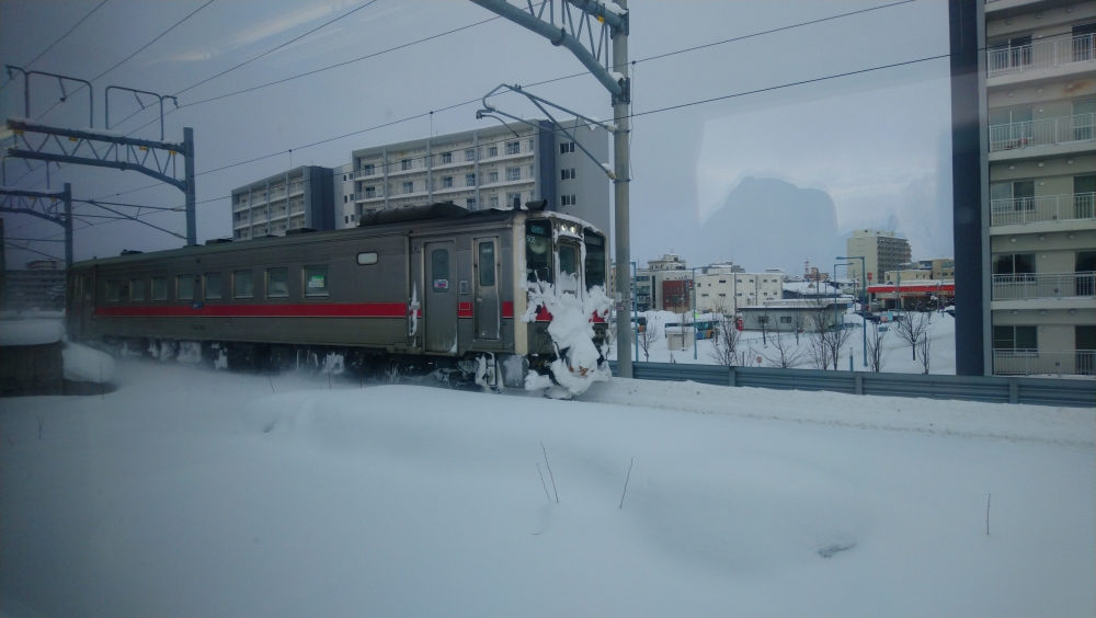 江別から小樽まで1時間半ほどキハ201のハイパワー運転を楽しみます。札幌からは外国人観光客がかなり増えて海沿いでは車内から写真を撮っている人が多数いました。