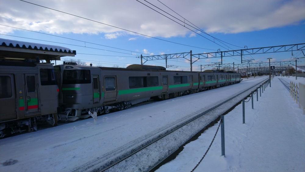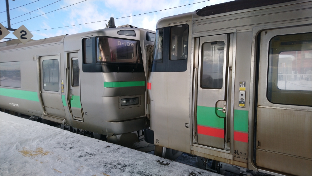 キハ201です。登場からもう30年近く経っていて、乗ったかどうか覚えてないので始発の江別から乗ろうと思ったわけです。731系電車との協調運転も行われています。