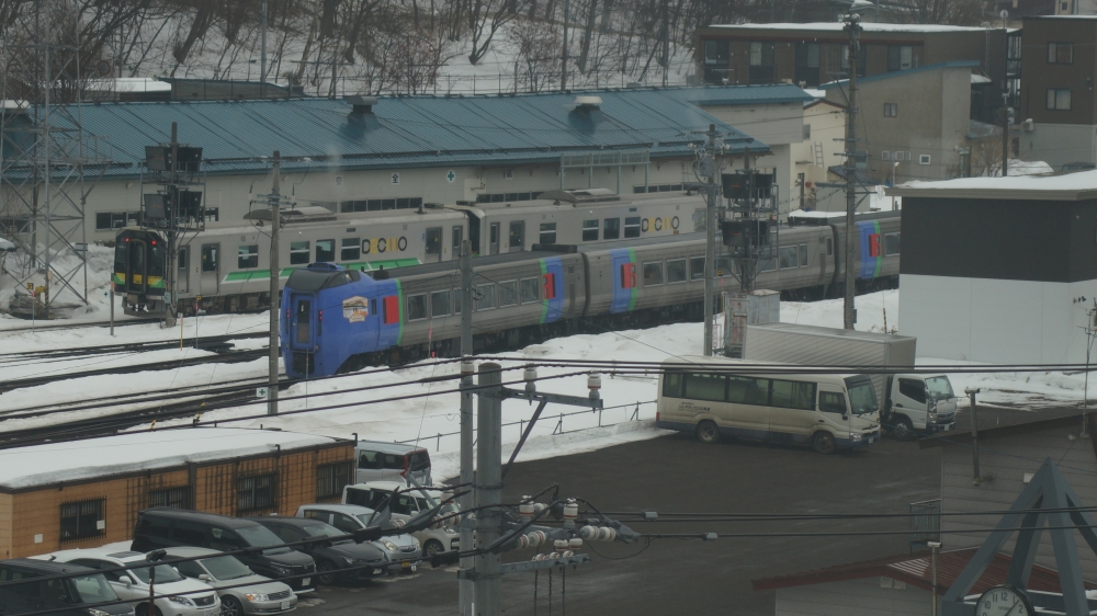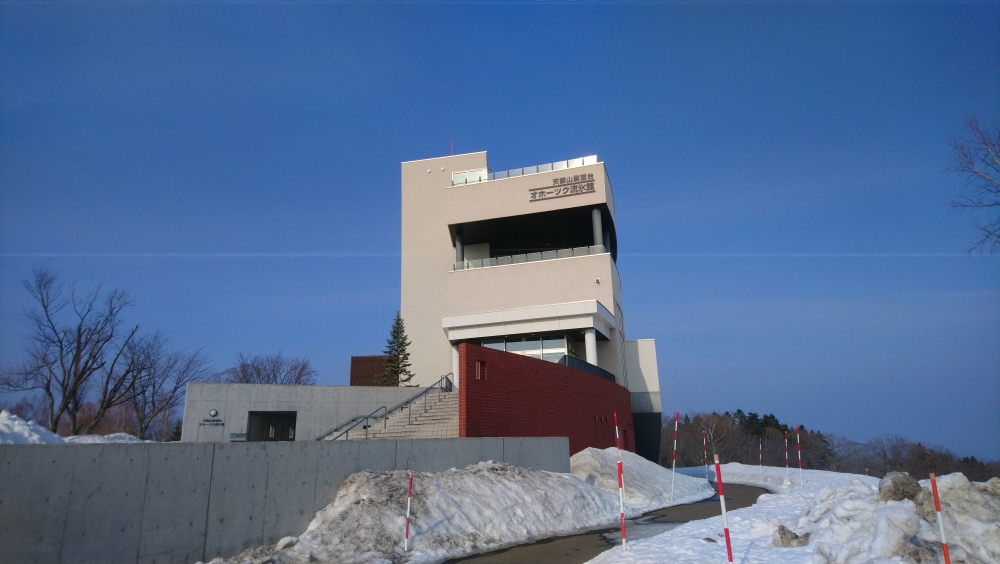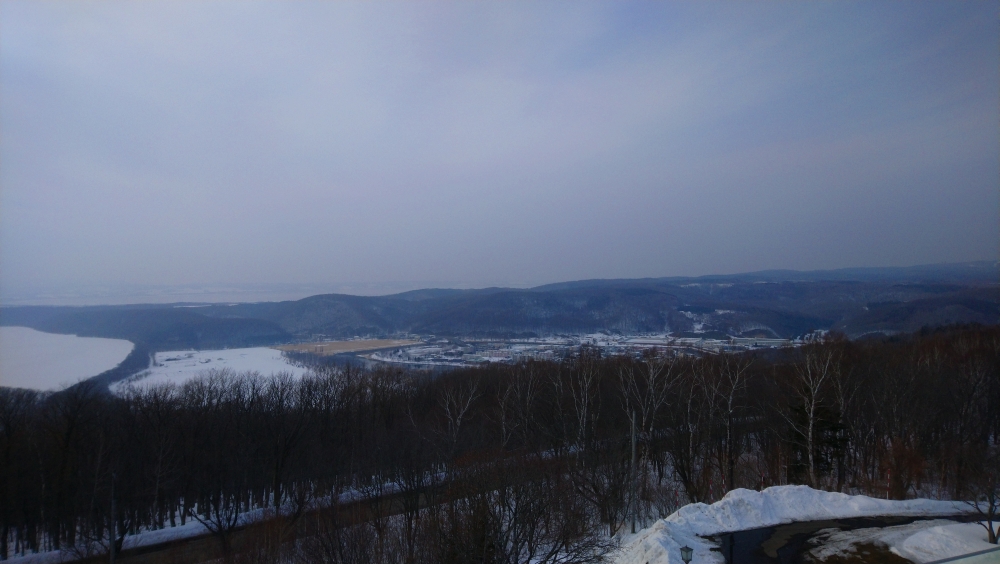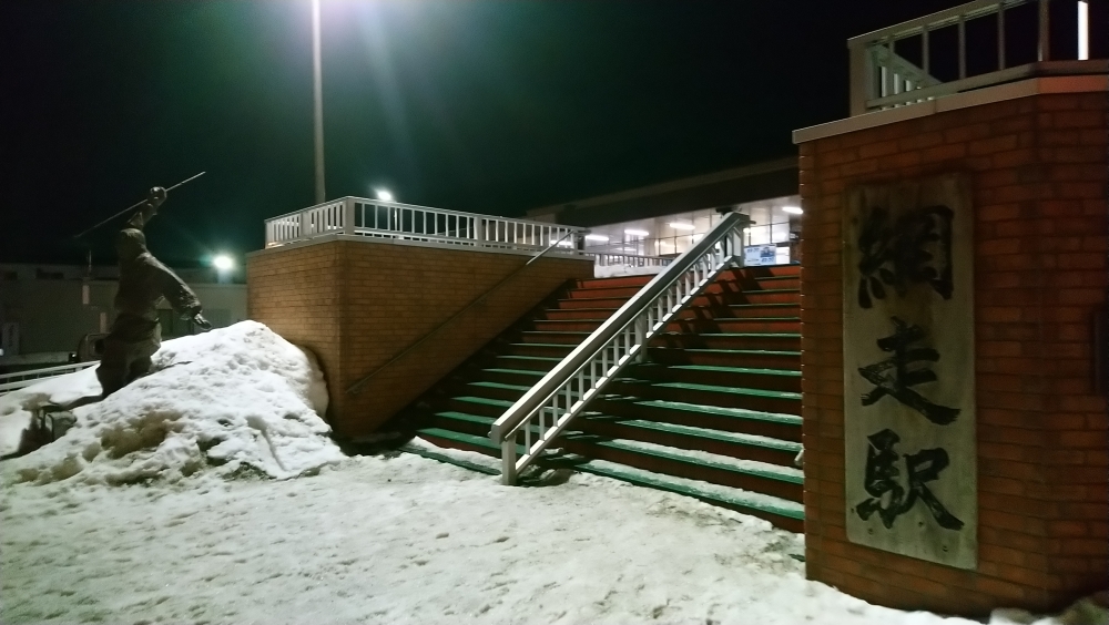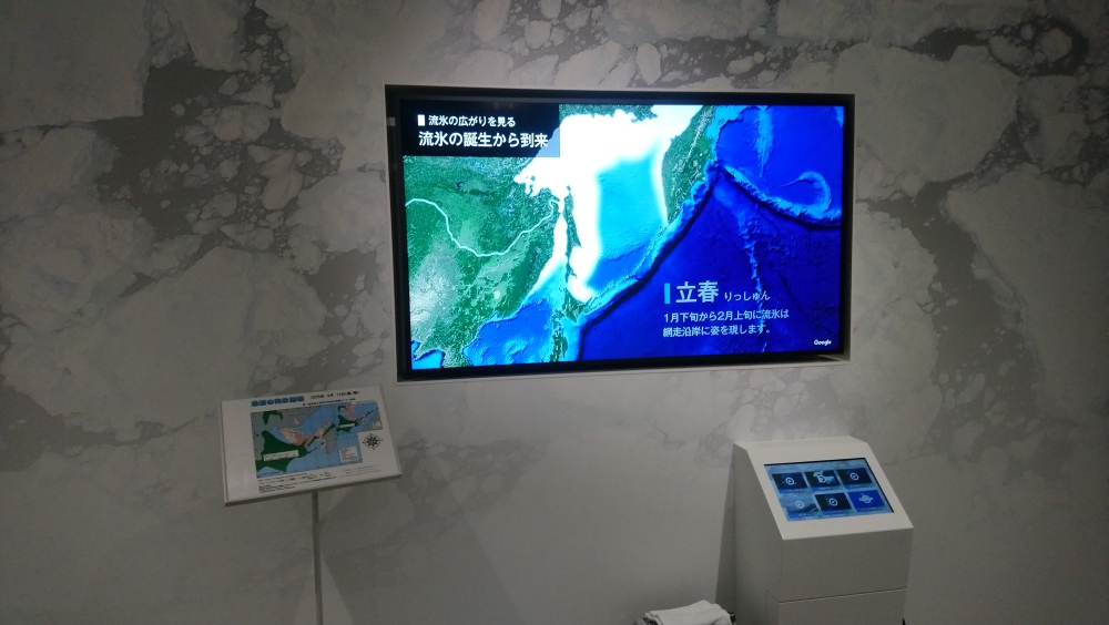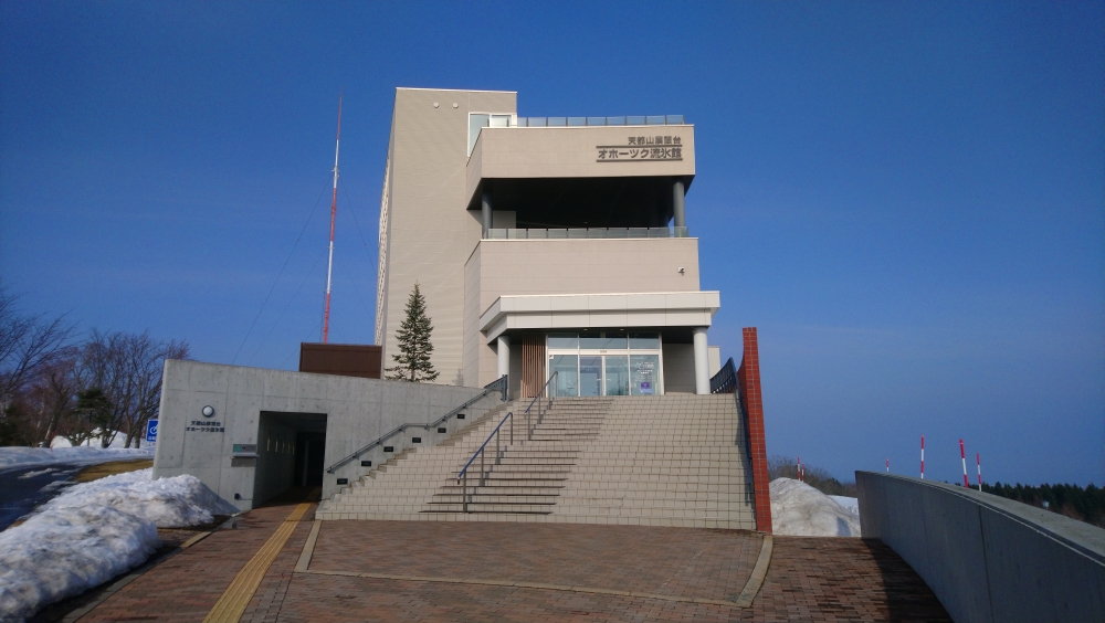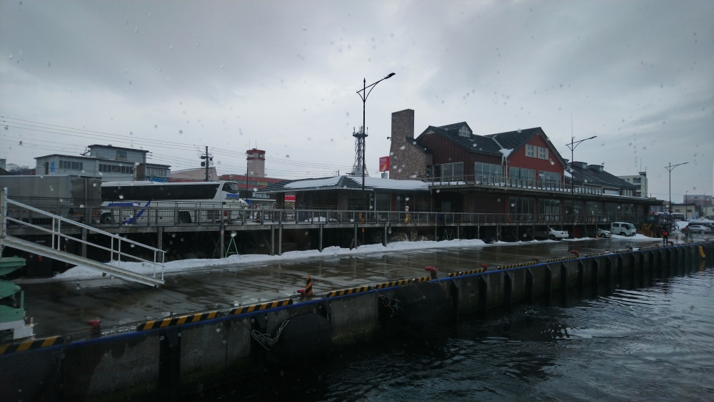 乗り場は道の駅になっていて、網走駅前の道路を東に進んで車だと数分です。駐車場があるけど、路面が凍っていて線が見えないからちょっと迷いますねw