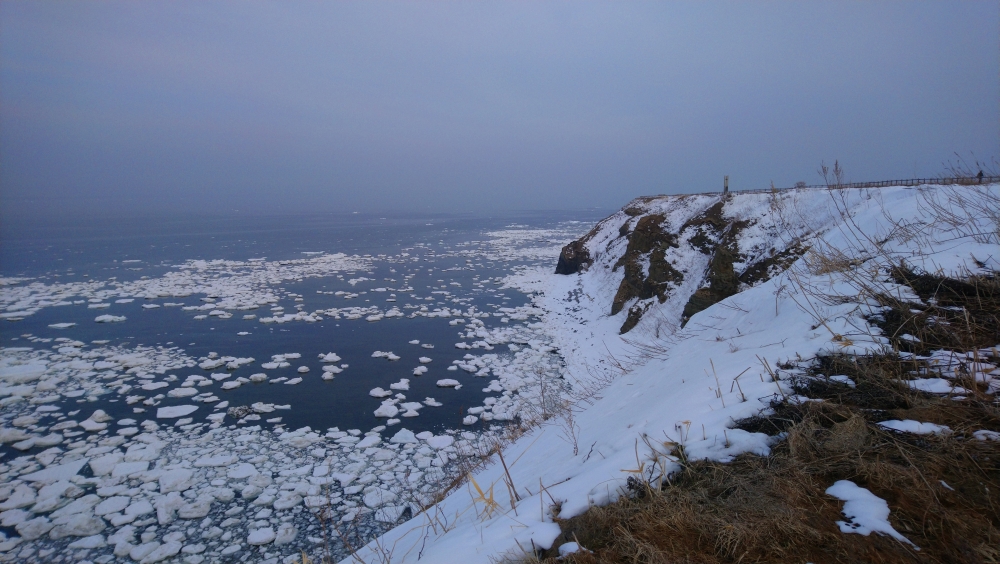 流氷館のスタッフ同士が今年はもう流氷が終わりかもみたいな会話をしていたのが聞こえてしまったので、砕氷船に乗っても期待できないかなと思い、能取岬で見ておこうと思った訳です。能取は「のとろ」と読みます。
