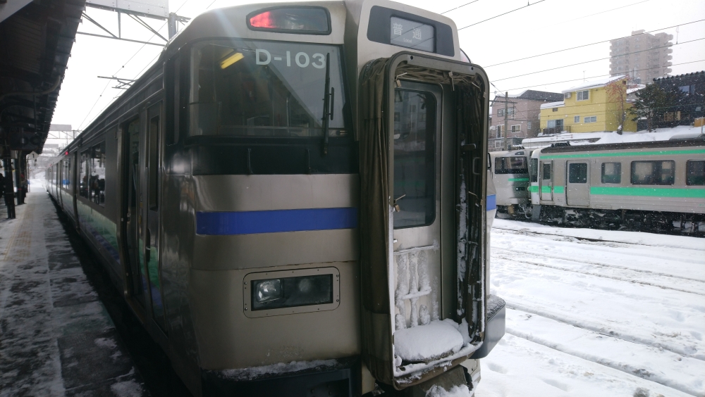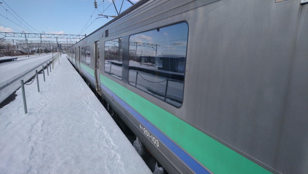 キハ201です。登場からもう30年近く経っていて、乗ったかどうか覚えてないので始発の江別から乗ろうと思ったわけです。731系電車との協調運転も行われています。