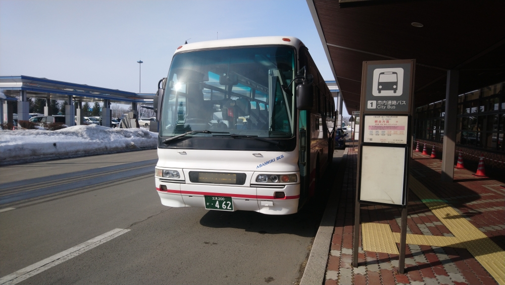 2025-3 網走1 流氷を見に行こうと思いつく HND-MMB 3月は流氷を見に行こうと思いついて網走に行くことにしました。当初は航空券とホテルを別々に取ってバス移動を考えていましたが、JLのダイナミックパッケージだと流氷観光砕氷船とレンタカーの割引率が高かったのでDPを利用することにしました。 早くも今年2回目のHND-MMBに搭乗。北海道に入るところ↓ 阿寒湖と雄阿寒岳↓ まだまだ雪景色のMMBに着陸↓ レンタカー送迎待ちの間に外に出てみます↓ 網走と北見行のバスが停車中↓ 前回と合わせて見た感じ北見行のほうが乗客が多いですね。 写真を撮ってたら呼ばれたので送迎車に乗って空港近くのレンタカー店へ。